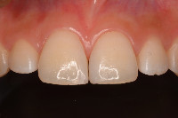 削るのはもったいないので、コンポジットレジン(CR)という樹脂で歯の形を改善しました。